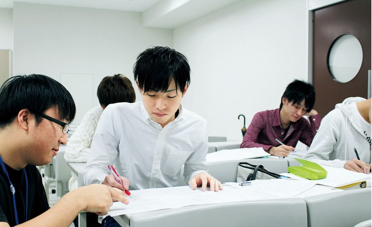 電気分野の基礎となる電気回路について、演習形式で繰り返し練習します。クォーター制に基づいた週2回の授業とTA(ティーチングアシスタント)の丁寧な指導で、基礎力がしつかり身につきます。