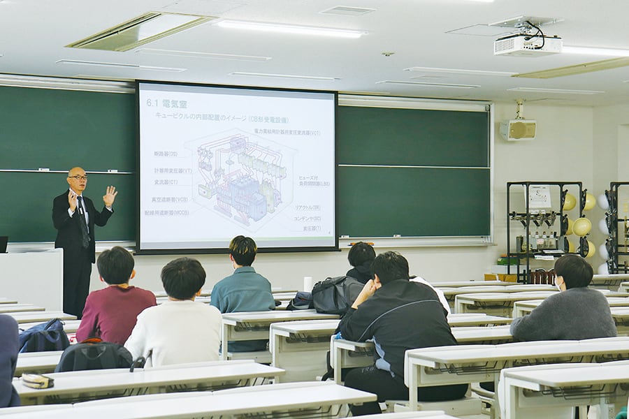 送配電とは、発電所でつくられた電気エネルギーを必要なところまで安定的に供給する技術。具体的な事例を踏まえた学修で、電力流通の仕組みを理解します。