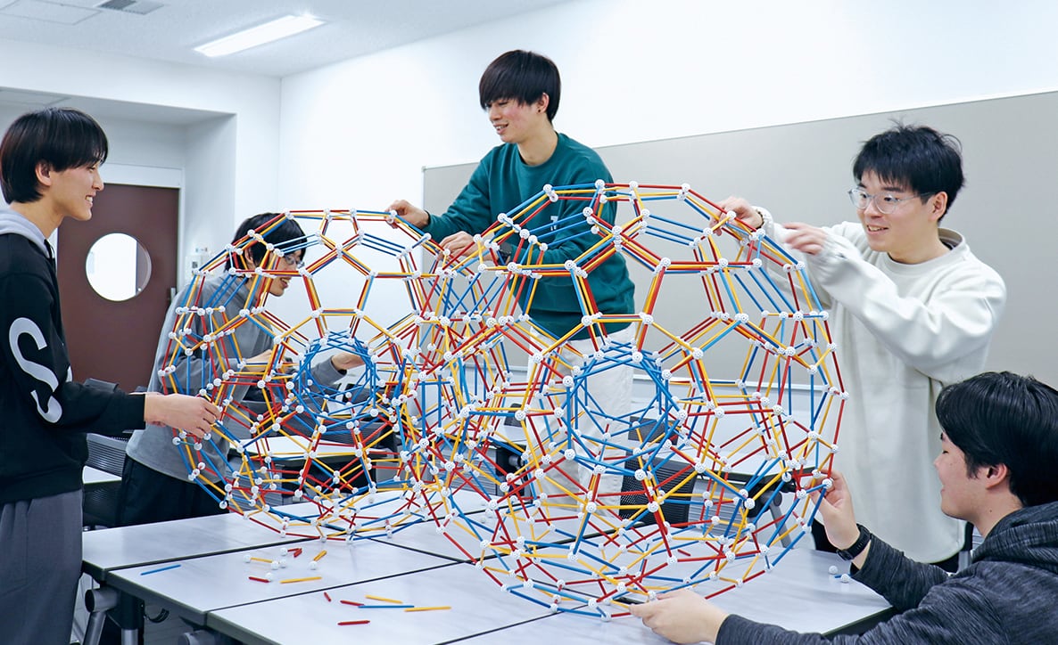 科学に対する実践力を身につけるプロジェクト学修です。数学、物理、化学のさまざまな課題を設定し、問題解決のプロセスを自ら考え議論し、実践していきます。これを通じて、社会人として必須のスキルを磨き上げることをめざします。