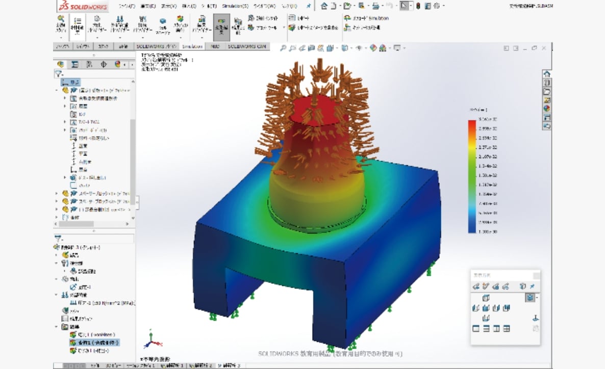 3DCADシステムを使ったコンピュータ上での設計、シミュレーションや解析、プロダクトサイクル管理などを体験。設計から製造までをつなぐ、一貫したシステムを実践的に学びます。
