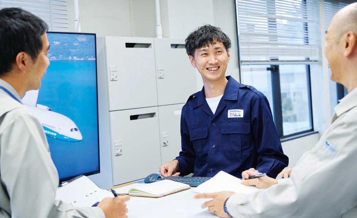 子どもの頃から航空機が好きでエアライン業界を志望。機械工学科では構造決めから調達・加工・組立・展示まで、モノづくりに欠かせない工程を一つひとつ経験することができました。そしていま、私は念願の航空機の設計に携わっています。一から開発した部品をイギリスの展示会で発表したり、海外の技術者とともに民間航空機のプロジェクトに参加したり。機体が離陸した瞬間は、仲間と喜びを分かち合いました。これからも知識を広げて開発に取り組んでいきたいです。