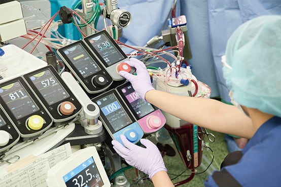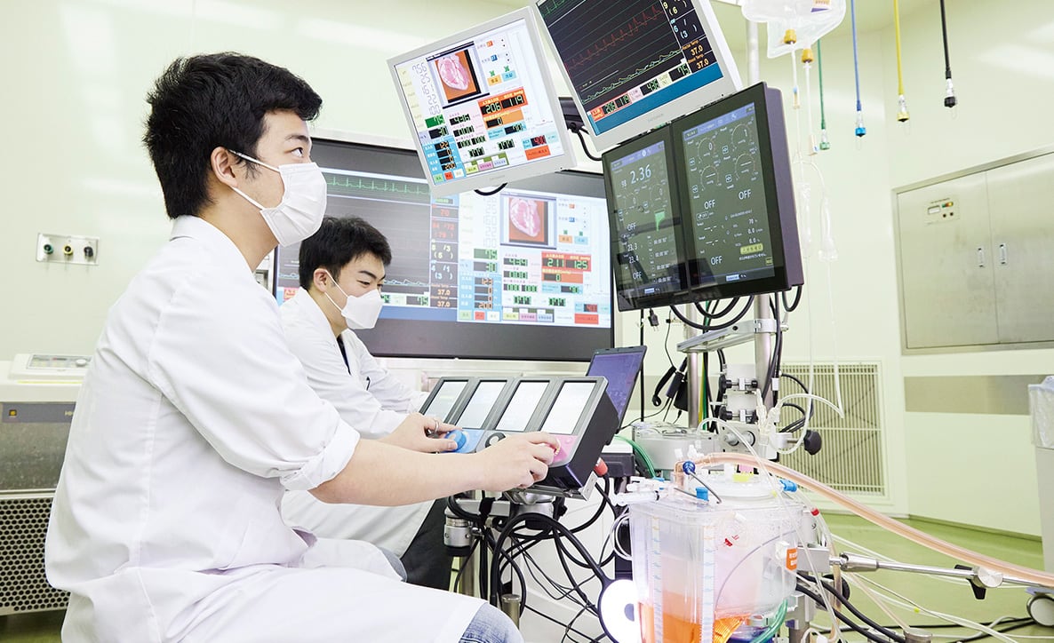 実際の手術室を学内に再現。本物の人工心肺装置に触れながら操作技術を学べる環境が整っています。臨床工学技士の合格率95%※