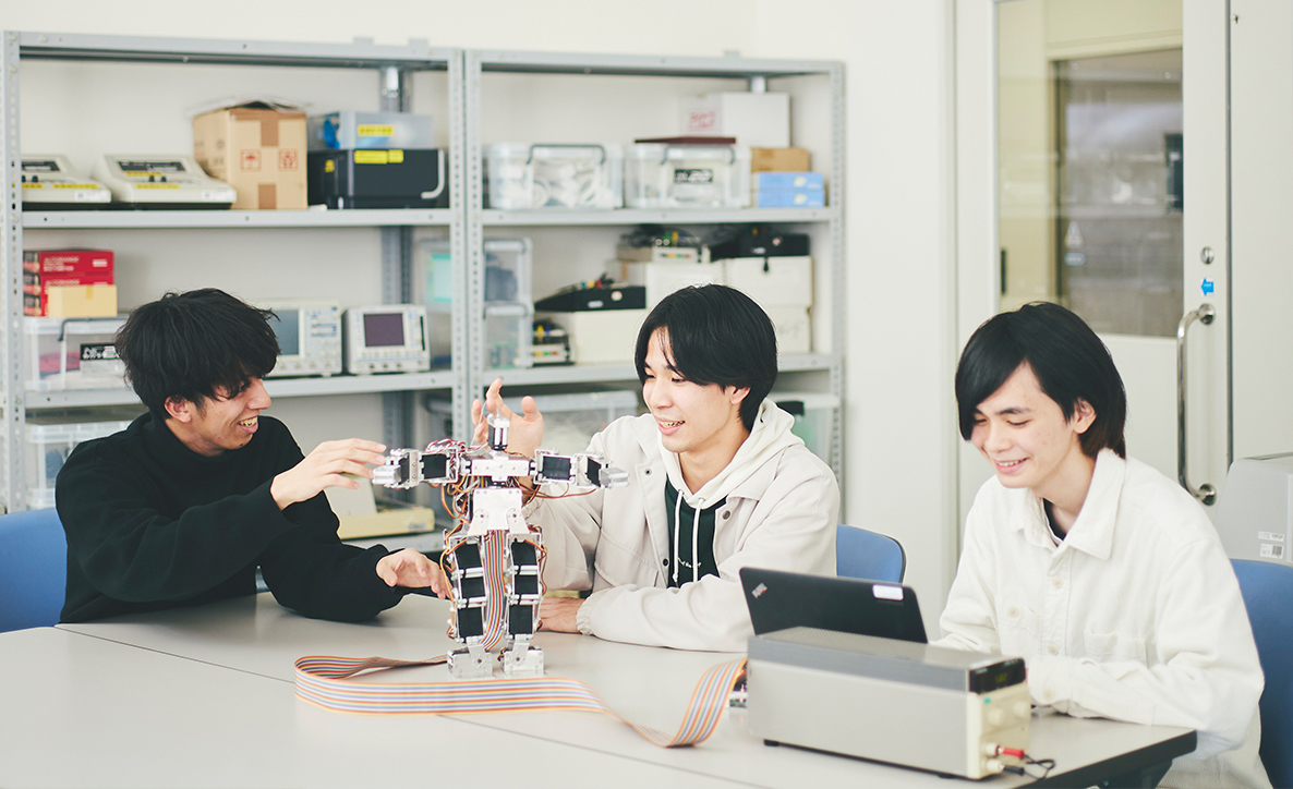 メカトロニクス化が進み、工学や情報と深くかかわる医療機器。一から部品や回路を組み立て、動作を制御し、二足歩行ロボットの製作に挑みます。少人数の班に分かれて共同製作を行い、チームで開発を進めるプロセスや、ひとつの目標をクリアした時の達成感も経験します。