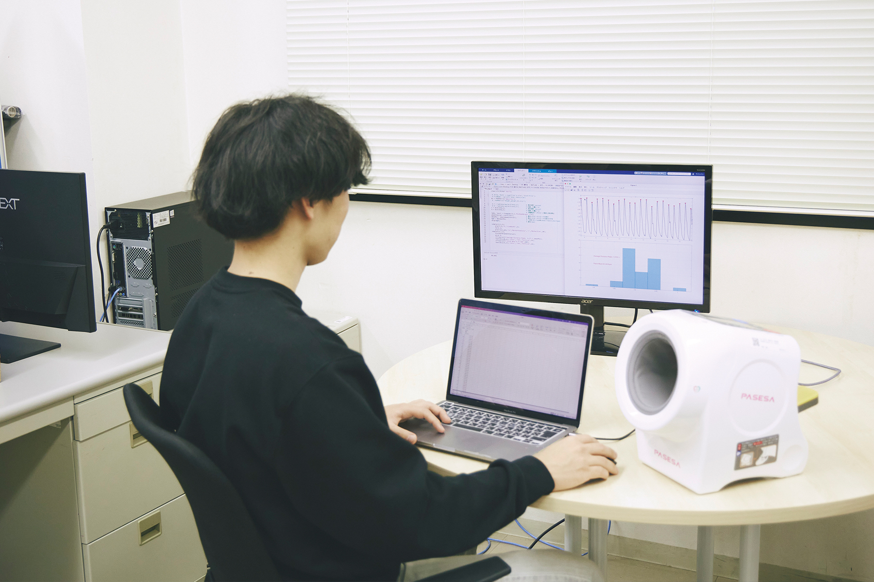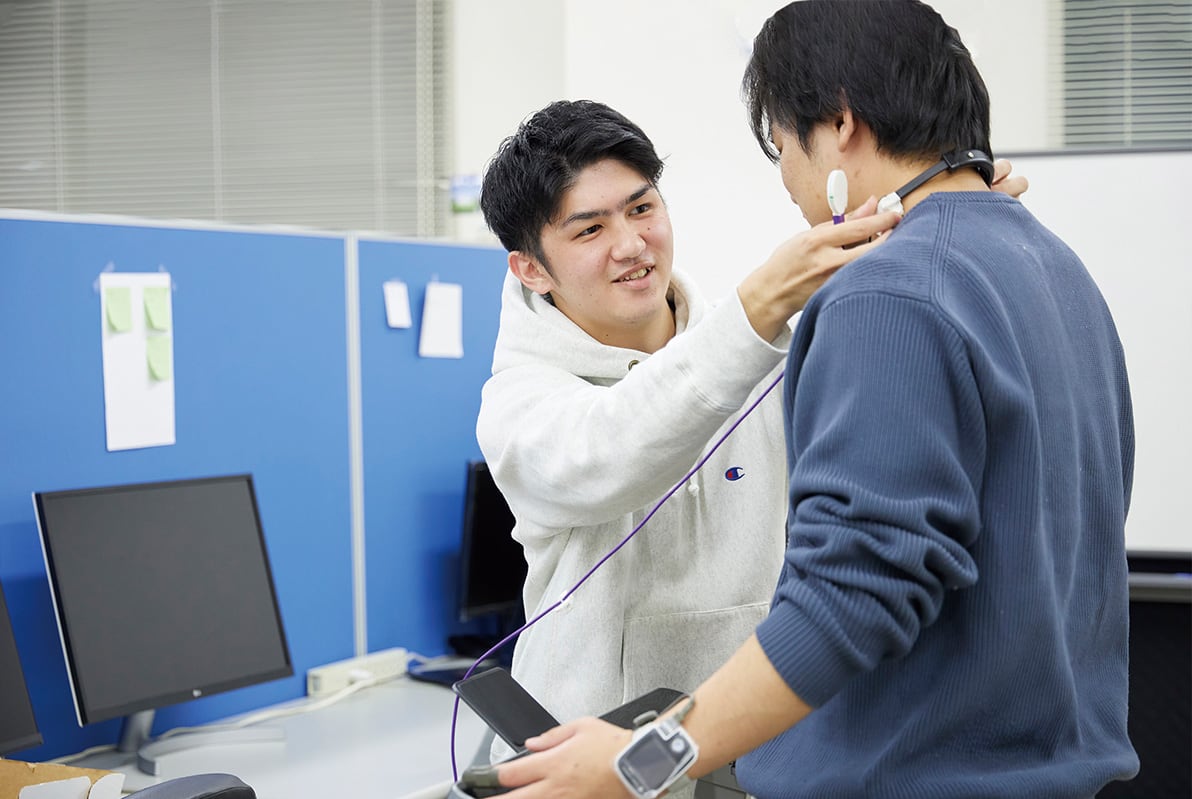 生命維持管理装置を取り扱う臨床工学技士という職種を知り、人の健康にかかわる仕事に興味を持ちました。研究室では「冷え症の重症化予防」をテーマに、温度センサで計測したデータを機械学習にかけるなど、AIを活用して研究。大学で得たITや医療の知識をさらに深め、「医療機器の専門家」として活躍したいです。