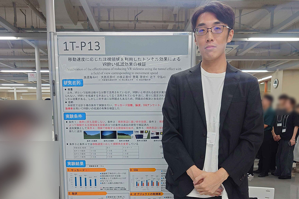 コロナ禍で社会全体が揺れ動いていた時期、学部から研究してきた「組み込みシステム」の分野をより深め、自分の中に揺るぎないものを培いたいと考え、大学院への進学を決めました。もともと、プログラミングはひとりで黙々と行うものだと思い込んでいたのですが、この大学では学部時代からチームで演習や研究に取り組むことが多く、対話や意見交換の大切さを学びました。組み込みシステムの展示会「ET&IoT West」に参加し、ポスター発表を行ったことで、社会で活躍するエンジニアの方々から意見をいただき、この経験が、さまざまな角度から物事を考える視点を育んでくれました。大学院では、人とのかかわりがさらに広がり、後輩たちに向けて制御についての授業を行ったり、先生と一歩踏み込んだ意見を交わしながら研究を進めたりと、社会に出てからチームでプロジェクトを進めていくイメージを具体的に持つことができました。卒業後は、高齢化が進む地域社会で、車と切り離せない生活を送る方たちに安全安心を提供したいという思いから、ダイハツ工業へ。機器の中枢を担う制御システムの面から、安全な車づくりに尽力したいと考えています。