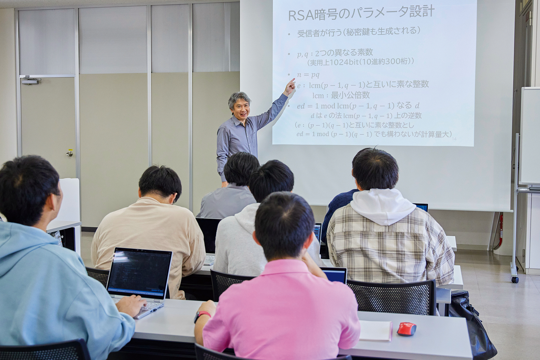 不正使用や攻撃から情報システムを守るために不可欠な情報セキュリティ技術。この授業では、国家試験である情報セキュリティマネジメント試験にも出題される技術を広く学び、さらに技術の理論的な裏づけについても理解を深めます。