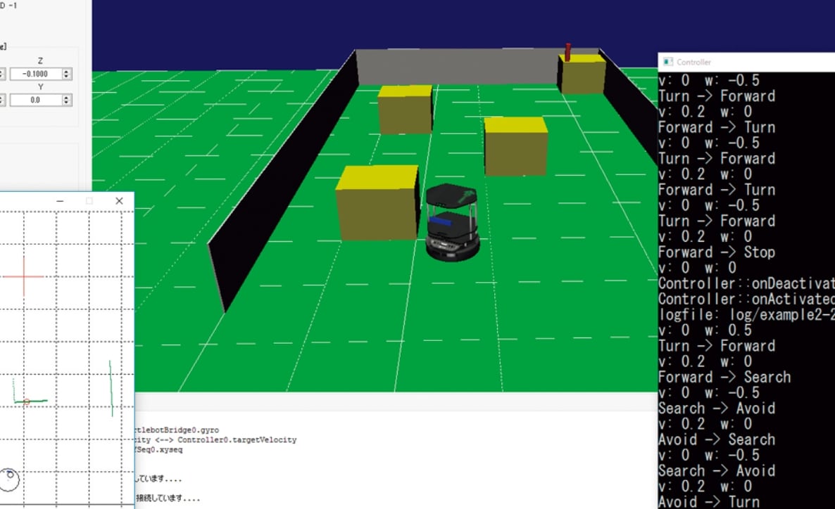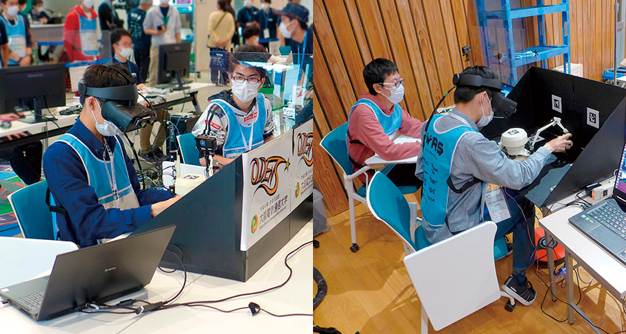 ロボティクス研究室では研究の一環として、「ODENS」というチーム名で「World Robot Summit(WRS)」に参加しています。WRSは、世界中から集結したチームがロボットの技術やアイデアを競う競技会。「トンネル事故災害対応・復旧チャレンジ」という、ロボットシミュレータ内に再現された災害現場にロボットを投入し、遠隔操縦によりタスクを遂行する能力を競う部門に出場しました。AR技術を活用した双腕の建機型ロボットを製作するという、他にはない取り組みに挑戦。勝敗を競うだけではなく、研究の成果を検証したり、新たな課題を発見したりするための貴重な機会となっています。