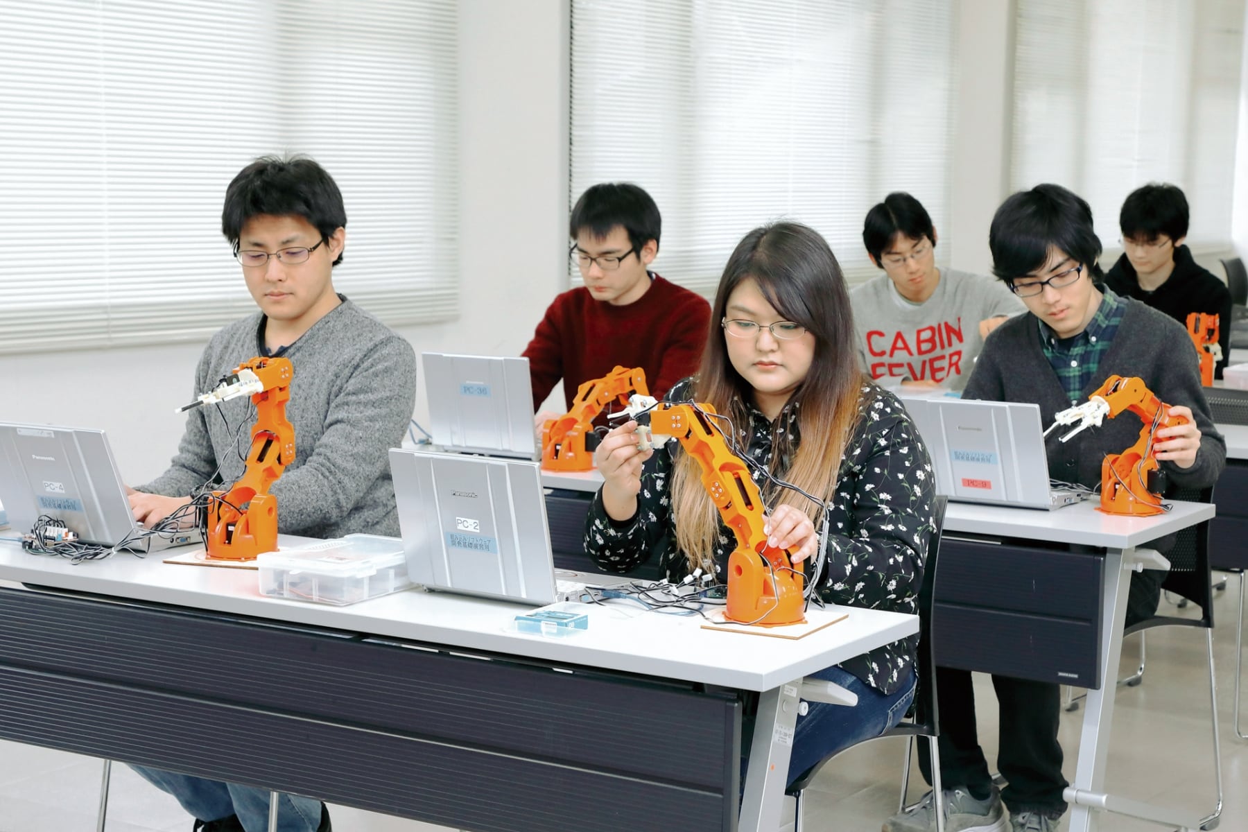 1年次で得たコンピュータに関する知識を応用し、ロボットプログラミングなどに取り組みます。実際にシステムをつくり、動かすことで、情報システムの設計・管理・運用に必要な能力の向上をめざします。