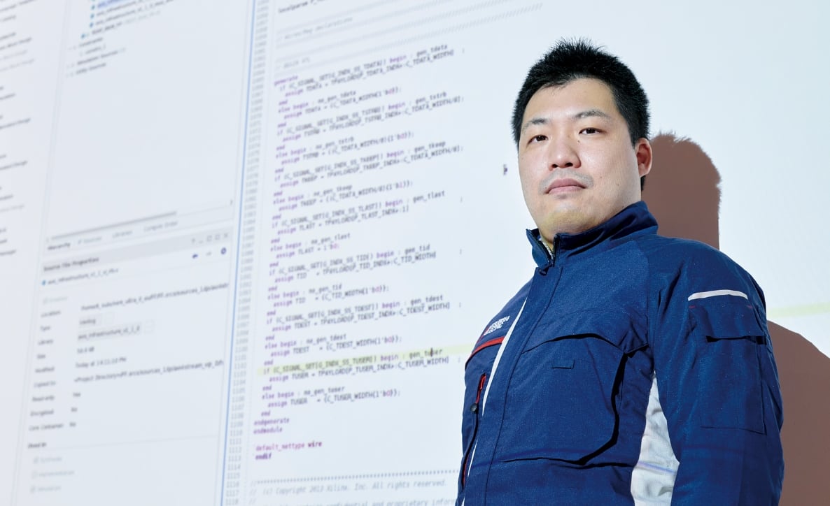 私は在学中、組み込みシステムに関する研究室で、日々技術を磨いていました。研究成果を展示する「ETWest」に参加した際には、プロのエンジニアから鋭い質問をもらい、開発者は製品を現場で役立つレベルに改良し続ける姿勢を持たなければならないと実感。入社後はLSIと呼ばれる集積回路の設計開発に携わっています。LSIは変化が目まぐるしい分野です。小さな改善の積み重ねで、まわりより一歩進んだ技術を開発し続け、周囲をあっと驚かせるような成果をあげていきたいです。