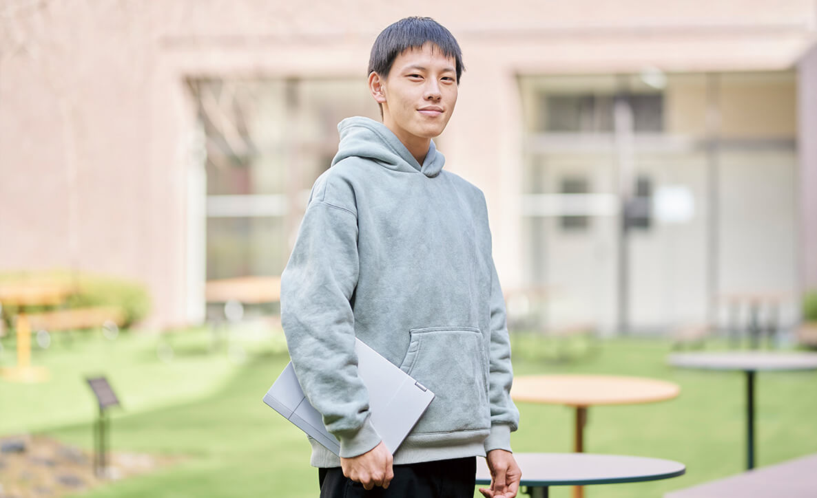 「情報」の分野を幅広く学べる環境に魅力を感じてこの学科を志望しました。授業ではプログラミング言語の修得やPC組み立て、ロボット制御など貴重な経験をし、トライアンドエラーを楽しんで取り組みました。資格取得サポートを受け、計画力や意志力を育み、多くの資格を取得。卒業後は富士通で大きなプロジェクトを担当し、社会問題の解決に尽力したいです。