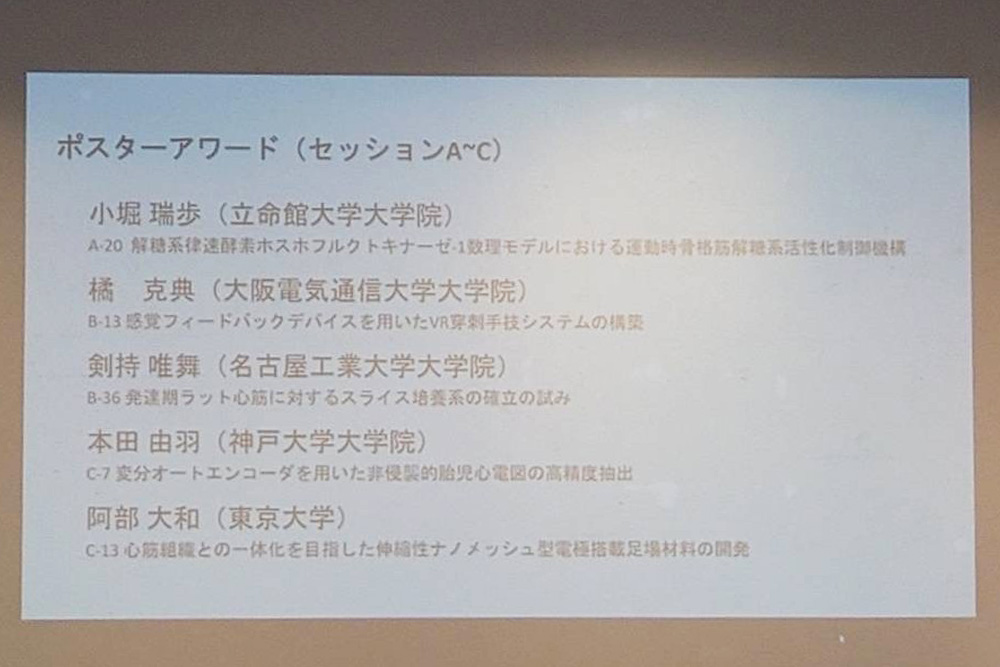 9月12日(金)、13日(土)、山梨県立図書館(山梨県甲府市)で開催された「生体医工学シンポジウム2025」で、健康情報学部健康情報学科 医療工学専攻/大学院医療福祉工学研究科 医療福祉工学専攻 橘克典准教授がポスターアワードを受賞しました。