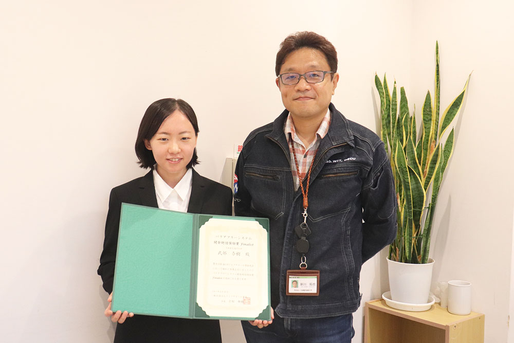 武部さんは「ご指導いただいた先生方、研究に協力してくれた仲間、そして研究に関わってくださったすべての方々に心より感謝しています。自分の研究が評価されたことに驚くとともに、大きな喜びと今後の研究への新たな意欲を感じています。研究を進めるうえでは、実験への協力や先生方からの助言を直接いただける体制、また研究に必要な物品や設備が整っていることが大きな支えとなりました。今回の研究では、開発したゲームシステムの有効性を示すことができましたが、これはまだ第一歩です。今後は、視覚障がいのある方々に実際に遊んでいただき、操作性やルールの分かりやすさだけでなく、『楽しさ』や『没入感』といった感性的な側面も含めて、より完成度の高いゲームシステムの開発を目指していきたいです」と意気込みを語りました。