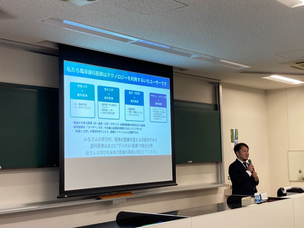 技術の進歩が目覚ましい歯科医療業界において、現在も第一線でご活躍されている歯科医師という立場から、本学での「実学に基づく学び」が、現在の歯科医療技術にどのように活かされているかについて、具体的な事例を交えながらお話しいただきました。