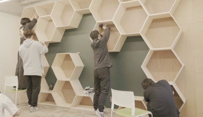 ■本学学生がキュウカンサ※の使われ方検討およびデザイン提案、DIYによる什器製作