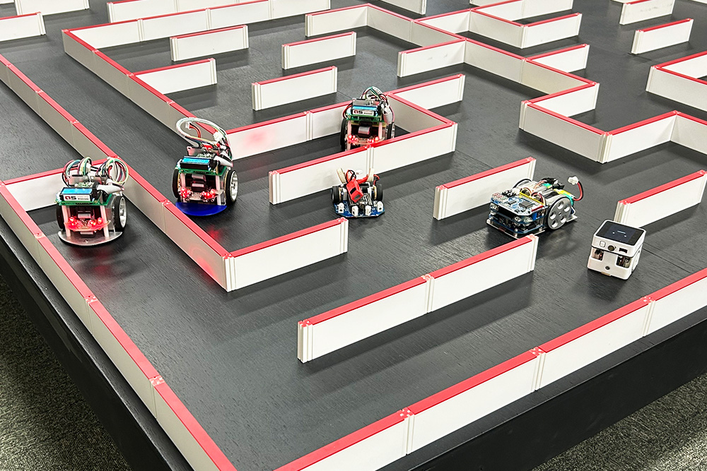 競技は「マイクロマウス競技」「クラシックマウス競技」「ロボトレース競技」の3種目で構成されています。マイクロマウス競技とクラシックマウス競技の競技内容は同じで、大きさの違いで分かれており、マイクロマウスはクラシックマウスの半分の大きさになります。どちらも参加者自らが作った自立型ロボットが自分の力だけで迷路を探索し、ゴールまでに達する最短時間を競う競技です。「ロボトレース競技」はロボットに全長60m以内の周回コースを走行させ、自律操縦の巧みさとスピードを競う競技です。