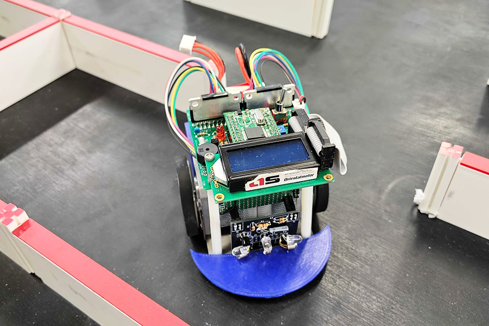 坂上さん「今回の迷路は難易度が高く、第2走行では思うように走れず悔しい結果でしたが、改良したプログラムがうまく機能し、無事に完走できて嬉しかったです。自由工房で身につけた技術は、今後の研究にも必ず活かせると感じています。自由工房に入っていなければ、ロボットついてここまで深く理解することはできなかったと思います。実践的に取り組むことで大きく成長できました」