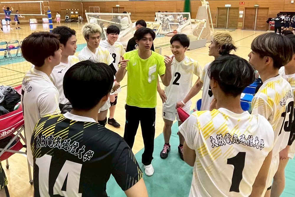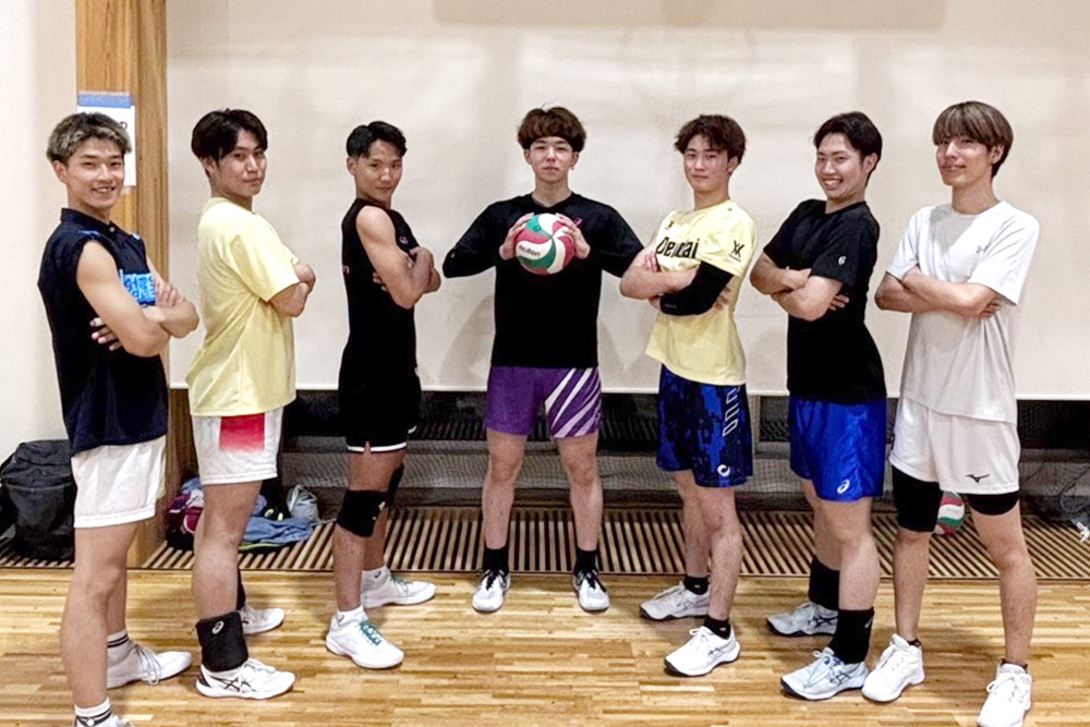 主将の宮岡仁俊さん(工学部建築学科※ 3年)は「春季リーグでは3部リーグ昇格を目指して挑みましたが、結果は3位で昇格できませんでした。その悔しさをバネに、秋季リーグではチーム全員が同じ目標に向かって新たに練習に取り組みました。“バレーボールは楽しく自由に!”をモットーに、個性豊かなメンバーが揃う中で、主将として全員が競技に打ち込める環境づくりを意識してきました」と振り返りました。
