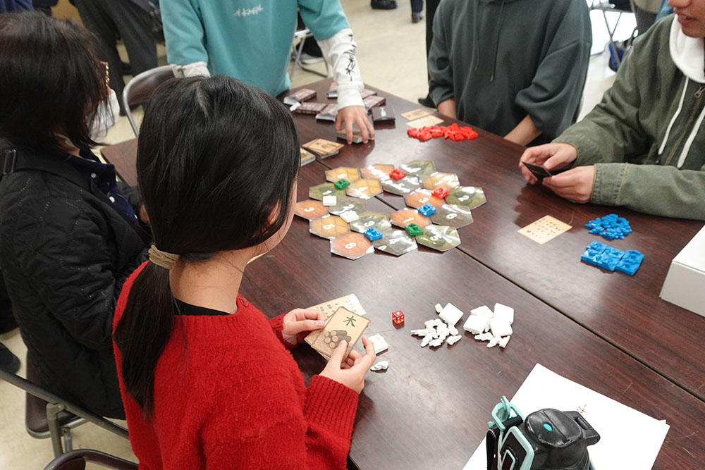 制作に携わった学生たちは、自身のゲーム作品の魅力を市民の方へ伝えるために、それぞれのゲームのルールや制作の背景など、わかりやすい資料を準備してレクチャーを行いました。幅広い年代の市民の方、四條畷市教育委員会の方々に楽しく遊んでいただくことができました。