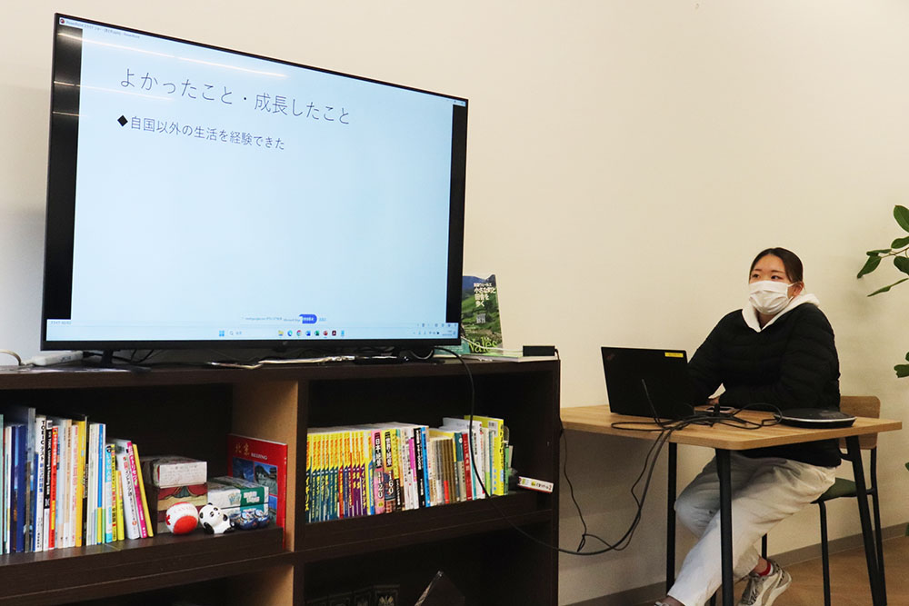 プレゼンテーション後の質疑応答では、国際交流センター 南津佳広 副センター長から「短期留学を経て、改めて日本を見つめ直すと日本はどのような国ですか」と質問があり、学生は「日本は安心や安全が保障されている国だと再確認しました」「オーストラリアは街中にごみ箱があるため、裸足で公園を歩けるほどきれいですが、日本はごみ箱がなくてもきれいです。それは日本人がごみを持ち帰っているからで、街がきれいな理由にも文化の違いを感じることができました」と留学先での学びを活かし質問に答えていました。