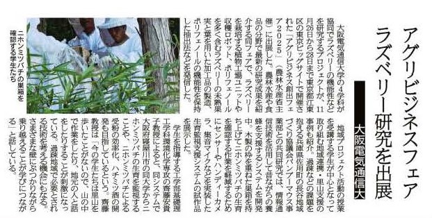 記事では、11月26日から28日まで東京ビッグサイトで開催された「アグリビジネス創出フェア2025」への出展と「地域プロジェクト活動」の授業を受講する学生が中心となって取り組む「ニホンミツバチプロジェクト」が紹介されました。