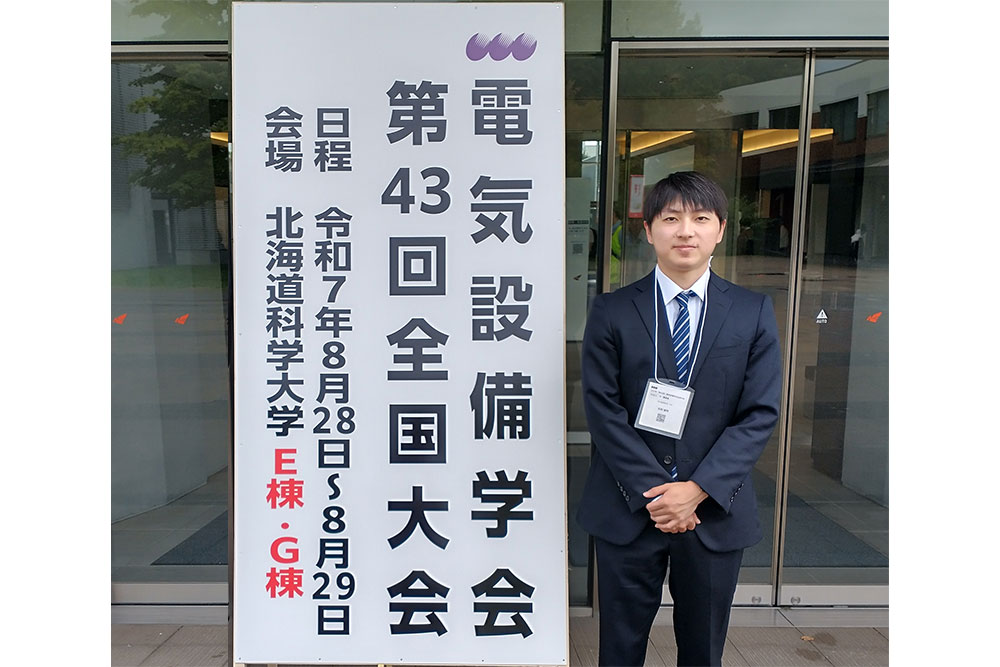 8月28日(木)、29日(金)の2日間、北海道科学大学(札幌市手稲区)で開催された「2025年(第43回)電気設備学会全国大会」で、北村威吹さん(大学院 工学研究科工学専攻電子通信工学コース 博士前期2年 濱田研究室)が優秀発表賞を受賞しました。