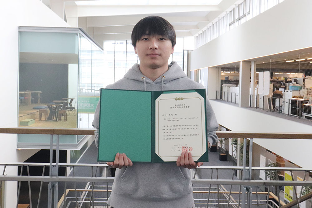 今回の受賞は、北村さんの研究内容の完成度の高さに加え、優れたプレゼンテーションが高く評価され授与されました。