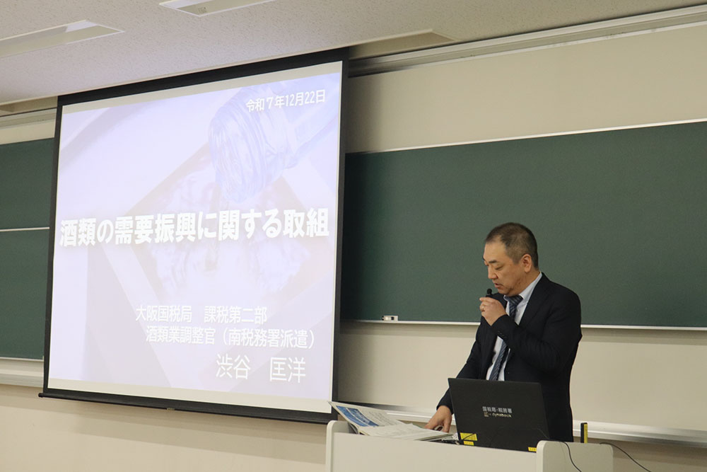 12月22日(月)、大阪国税局による酒税に関する特別講義が工学部環境科学科※3年生の授業の一環として寝屋川キャンパスで行われました。