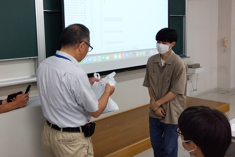 コンテストの結果発表は、各学年の後期初回授業の冒頭で行われ、参加者全員の健闘をたたえるともに、最終順位の上位24人に記念品を授与しました。