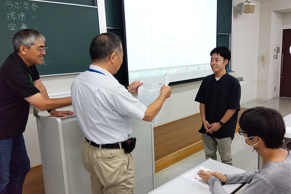 参加していた小川綾太さん(建築・デザイン学科建築専攻 2年)は、「1年生の時に表彰され、今年も受賞できて嬉しいです。タイピングは高校・大学の授業で取り組んでいたので得意でした。来年も上位を狙います」と話し、谷本皐月さん(工学部建築学科 3年※)は、「ゲーム感覚でできるのでタイピングは好きです。来年は自己ベストを目指して、また表彰されるよう頑張ります」と笑顔で語りました。