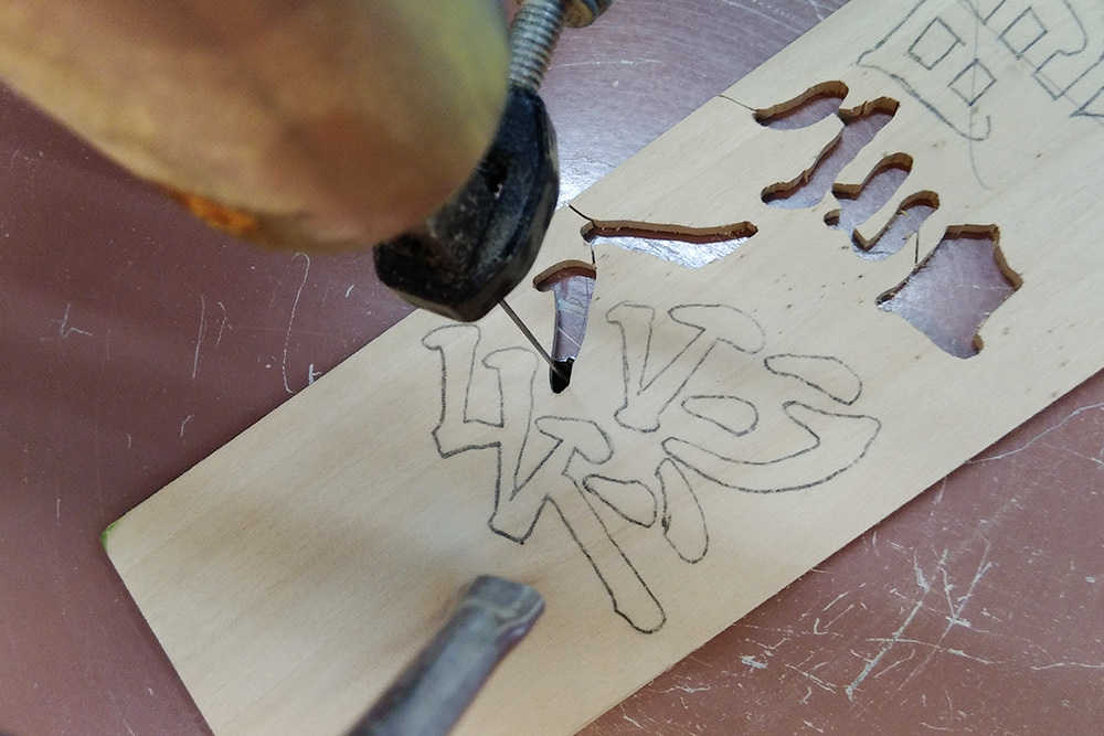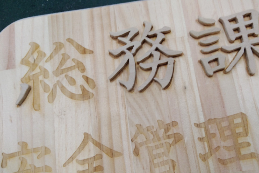 「電動糸鋸盤で文字を切る作業が大変で、特にカーブの部分は木が折れてしまうこともありました。面取りなど滑らかに仕上げる工程も難しかったですが、繰り返すうちにコツをつかみ、作業も早くできるようになりました。今回学んだ技術を活かして、自分の家の表札を作ってみたいです」