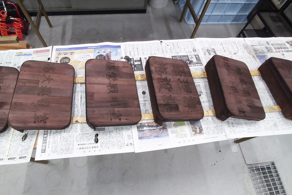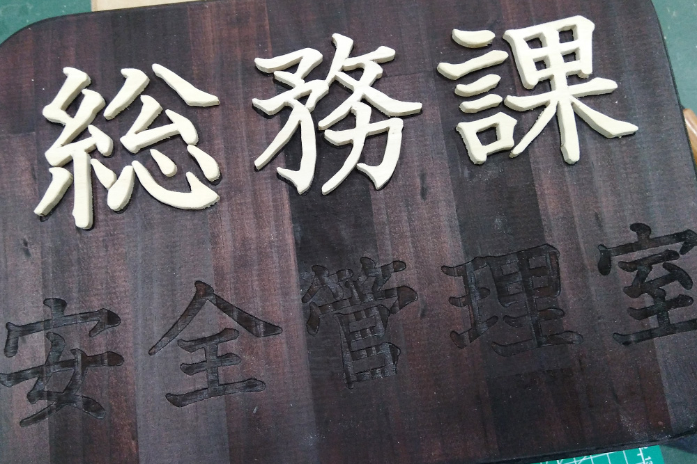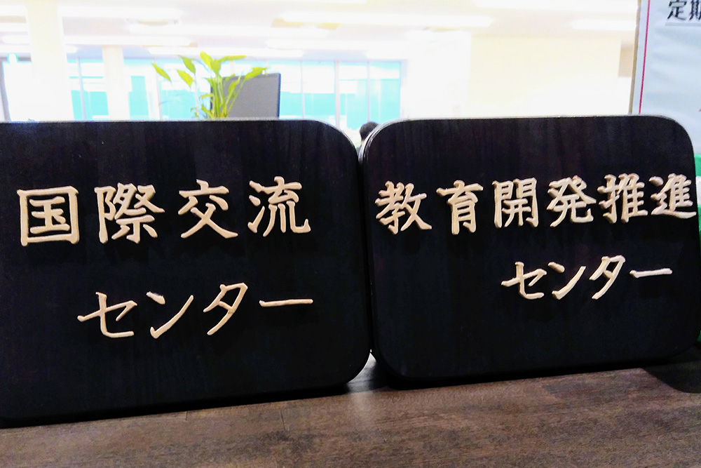 空間デザイン専攻「サインプロジェクト」に参加している建築・デザイン学科 空間デザイン専攻2年生の学生らが、木製の学内部署サインを制作しました。