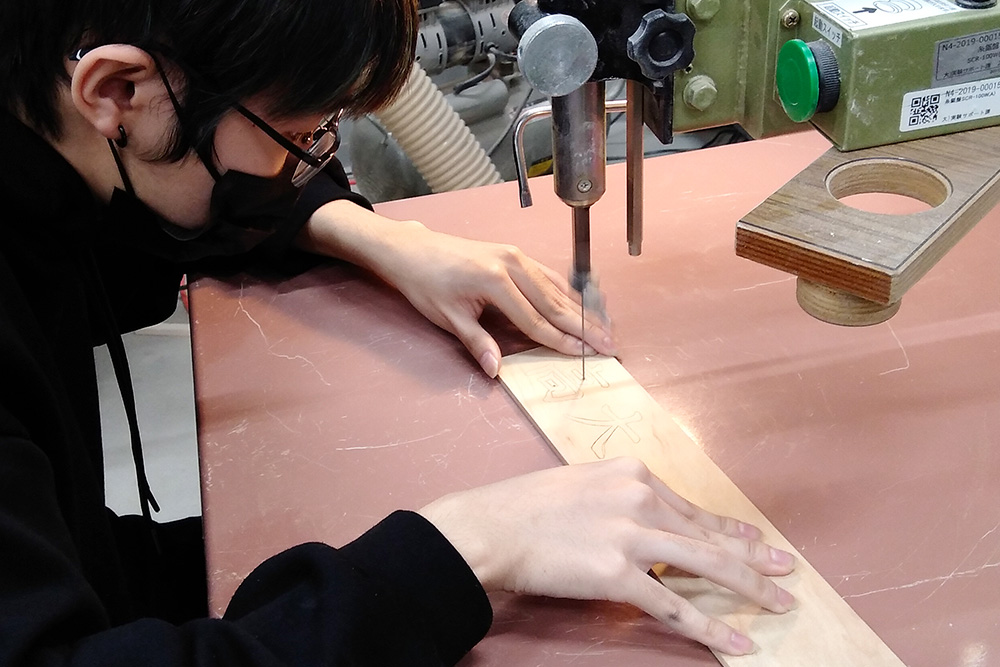 「大学での一つの経験として参加しました。完成したときは想像していた以上の仕上がりで満足しています。木工室の職員の方がとても丁寧に教えてくださいました。将来的に家具やインテリアを制作する際に、今回学んだ工具や機械を使って、自分のアイデアを形にしていきたいです」
