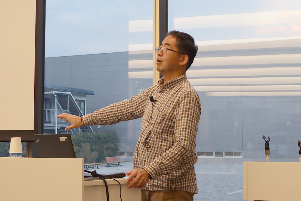 はじめ本講演会の主催である電気三学会について、工学部電気電子工学科 濱田俊之教授より紹介がありました。