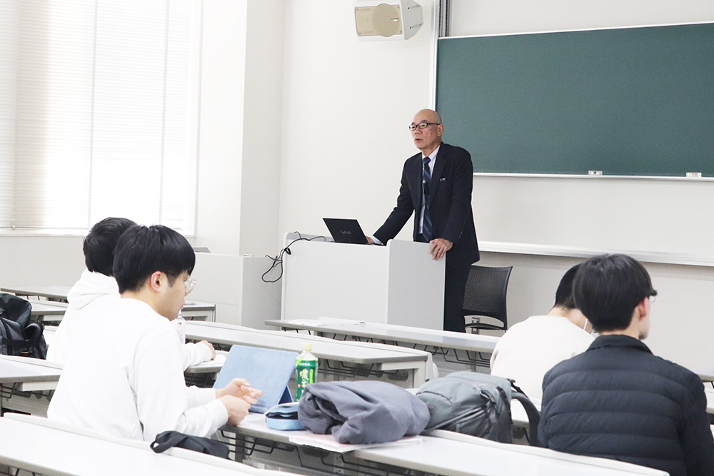 11月14日(金)の講座では、建築電気設備の設計や施工の専門家である北村康一氏を講師に迎え、「屋内電気設備」をテーマとした講座を実施しました。また、併せて、講座後には本学OECUイノベーションスクエア(A号館)の電気室の見学を行いました。