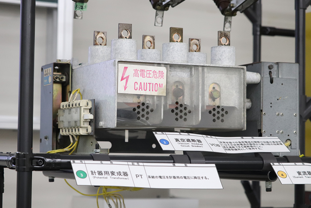 また、実際に使用されていた受電設備機器(除去品)を用いた説明も行われ、教室で学んだ内容を実機の構造と照らし合わせることで、理解がより深まりました。