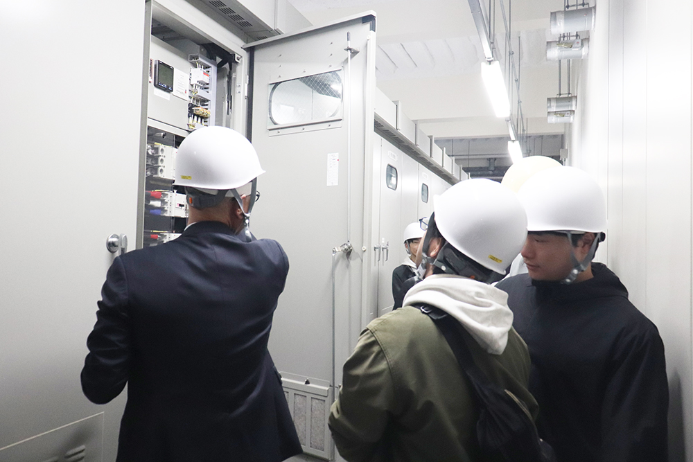 最後には、OECUイノベーションスクエア(A号館)の電気室を見学し、普段は入る機会のない電気室に興味津々の様子でした。