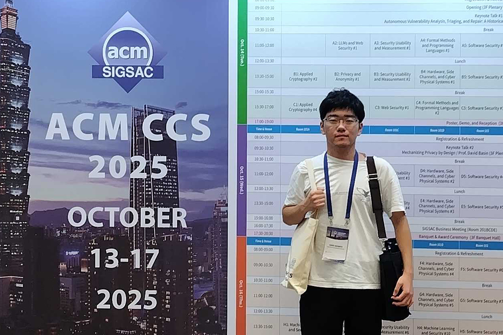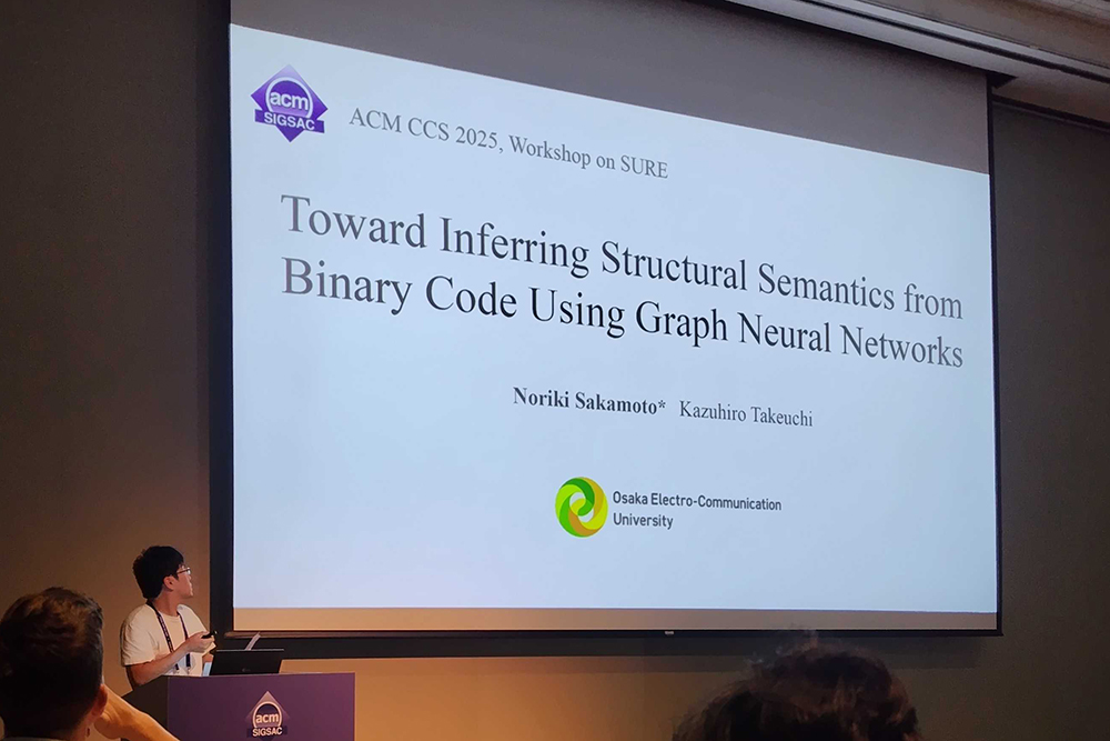 10月13日(月)から17日(金)の5日間、台湾・台北で開催された国際会議「The ACM Conference on Computer and Communications Security2025(ACM CCS)」のワークショップ「Software Understanding and Reverse Engineering(SURE2025)」で、坂本法樹さん(大学院 工学研究科工学専攻 情報工学コー2年 竹内研究室)が研究発表を行いました