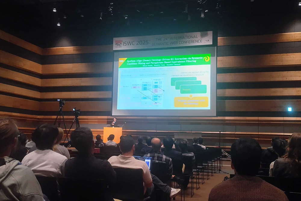 11月2日(日)から6日(木)の5日間、奈良県コンベンションセンター(奈良県奈良市)で開催された「ISWC2025(International Semantic Web Conference 2025)第24回国際セマンティックウェブ会議」で、佐々木陸仁さん(大学院 工学研究科工学専攻情報工学コース 博士前期1年 竹内研究室)が研究発表を行いました。