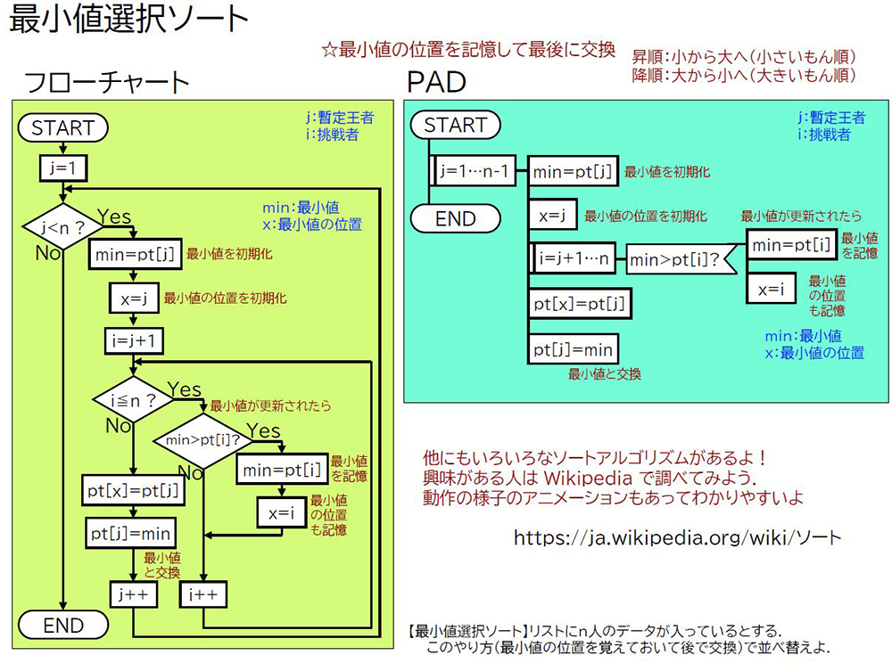 今回の講義のテーマである「ソート」とは、複数のデータを一定の規則に従って並べ替える処理のことです。 数値を大小順に並べたり、文字列をアルファベット順・五十音順に並べ替えたりすることがこれにあたります。