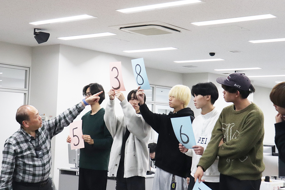 通信工学科1年生が授業で「人間ソート」を体験しました