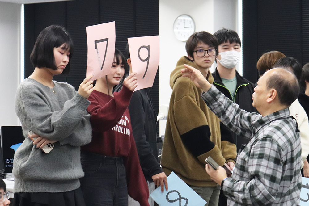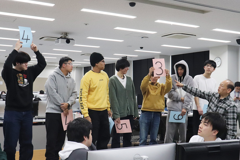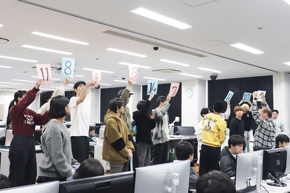 12月5日(金)、通信工学科1年生を対象に「プログラミング基礎演習」の授業の一環として「人間ソート」を体験しました。本授業は、プログラミングの基本概念からアルゴリズムの理解まで幅広く学び、今後の学修に活かすことを目的としています。